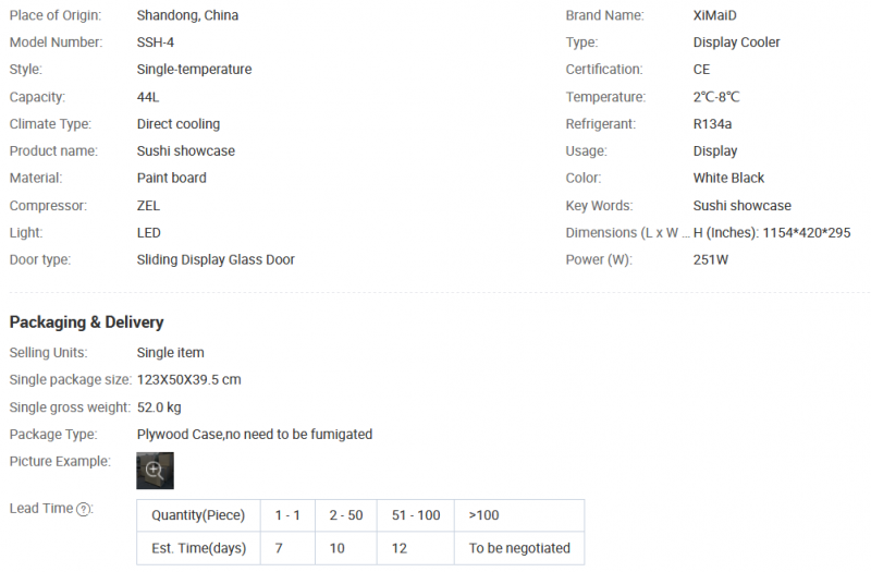 Here we list some of the product parameters, product length, power supply voltage, compressor brand, and power plug type can be customized according to requirements. Our product packaging is packed in wooden cases, not wooden frames.All glass is tempered glass If you need more information, please consult our business manager.